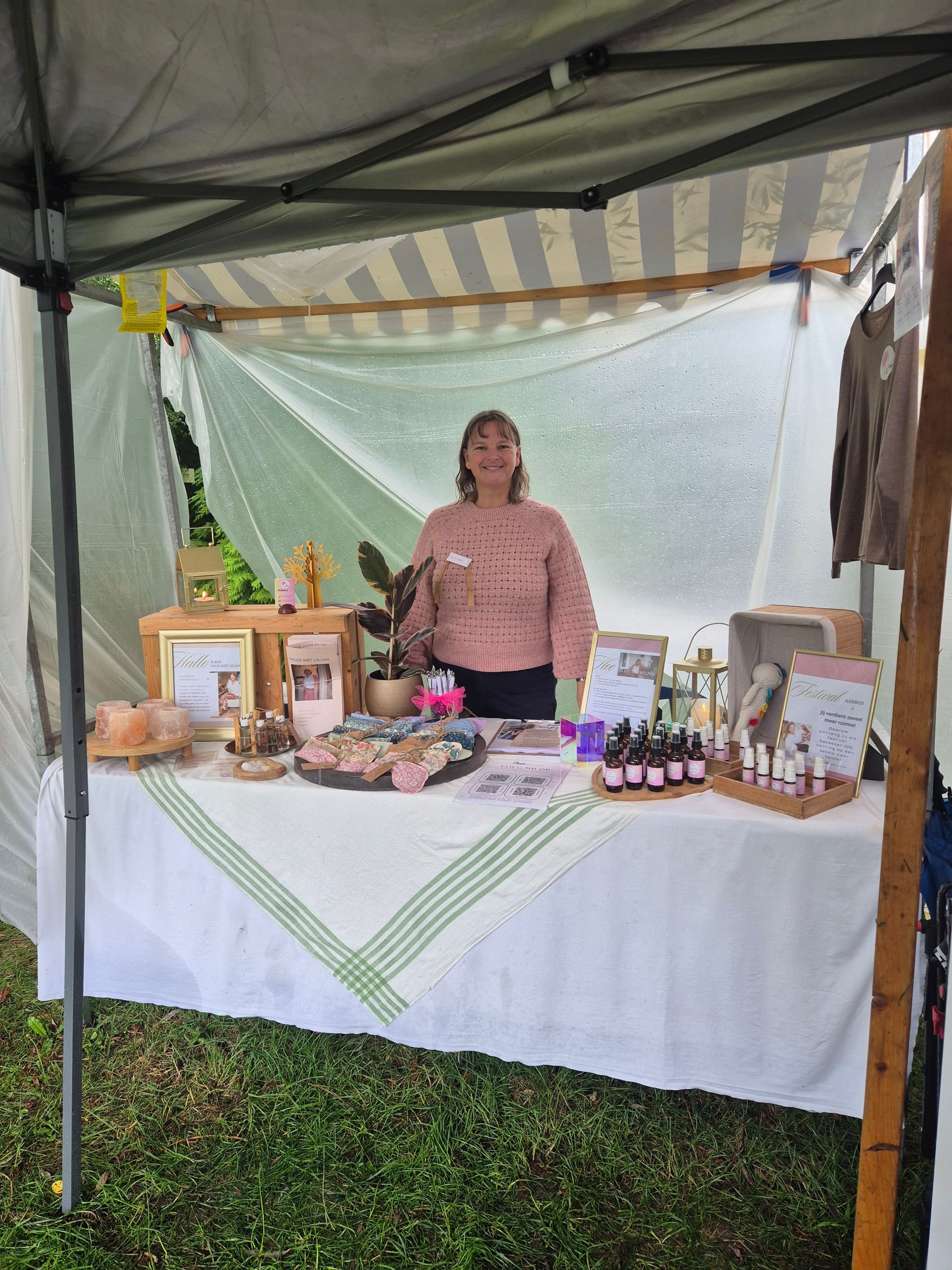 Je vindt me hier met mijn sprays en ruimte voor een persoonlijk gesprek.